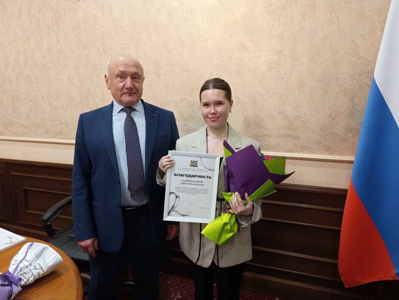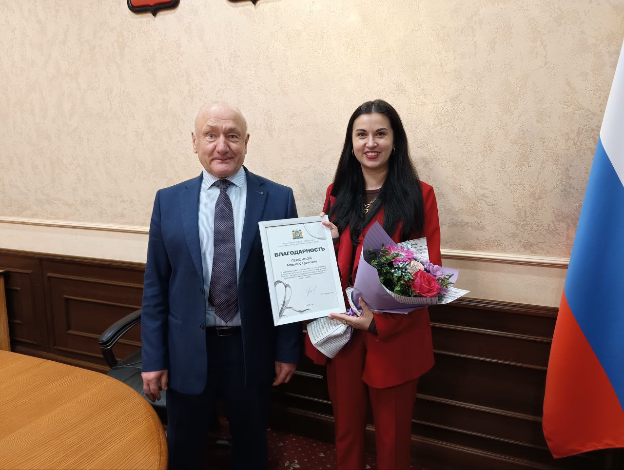 В начале заседания глава района вручил Благодарность первого заместителя Губернатора Югры Марии Першиной и Сабине Сулеймановой за личный вклад в обеспечение диалога югорчан с органами местного самоуправления, поблагодарил за эффективную работу, инициативность.