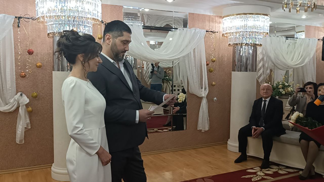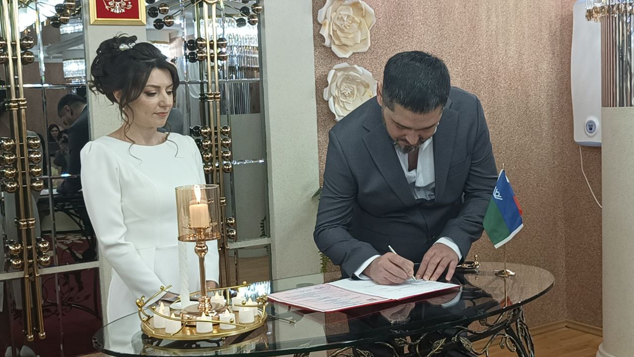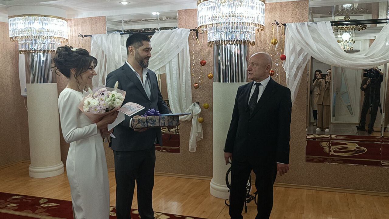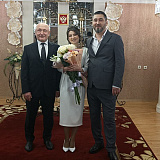 Сергей Маненков поздравил Тимура и Татьяну с рождением семьи. Подарил молодожёнам памятный подарок. Пожелал безграничной любви, искренности, взаимопонимания, уважения и доверия, мира, добра и долгих лет совместного счастья!