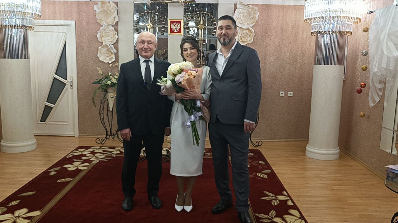 Сегодня глава района стал гостем на церемонии торжественной регистрации заключения брака Тимура Сагыналиева и Татьяны Рябко