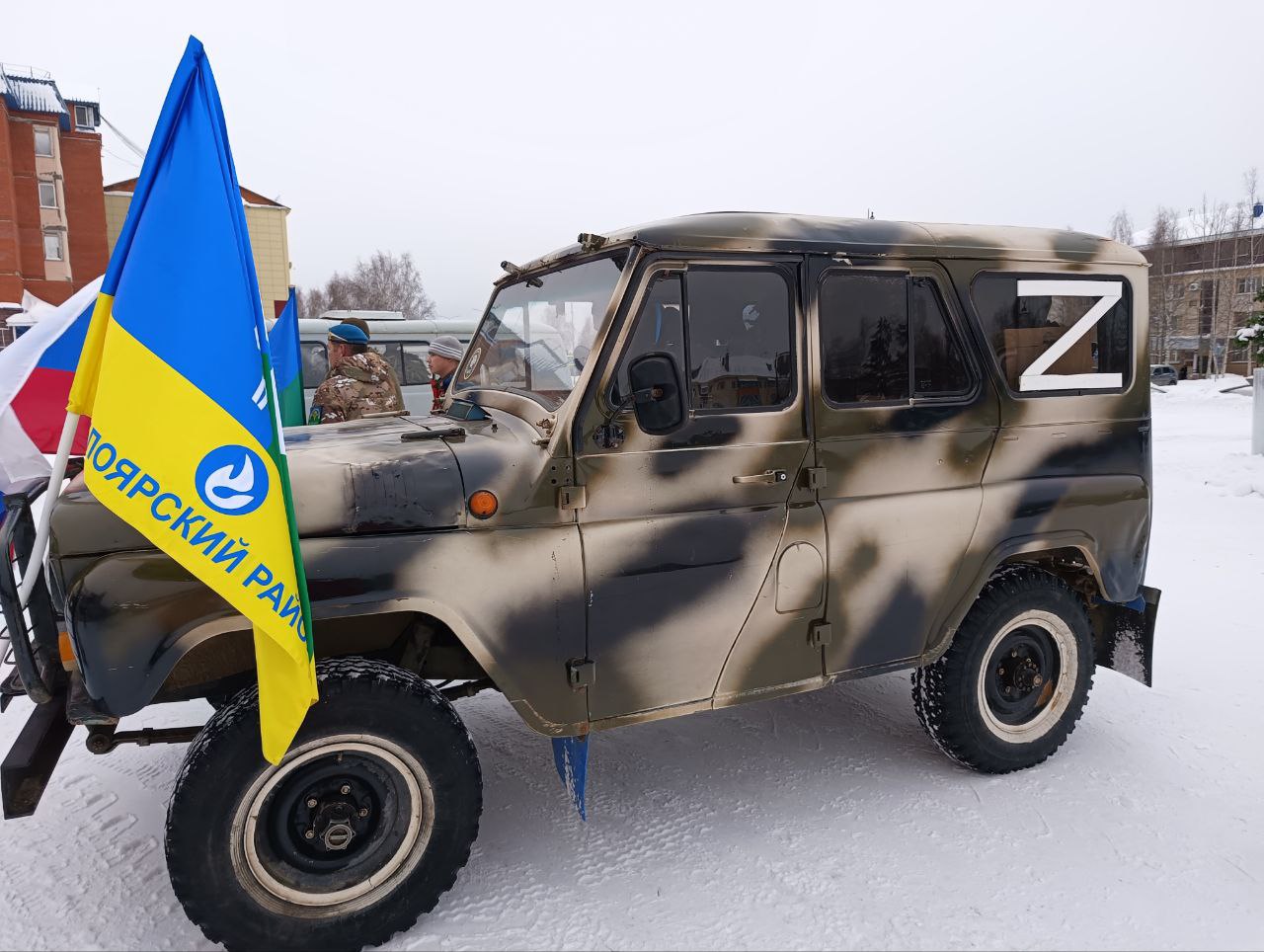 Накануне новогодних праздников глава района вместе с представителями общественных организаций, коллективами предприятий и учреждений, неравнодушными жителями района отправили два очередных автомобиля УАЗ и УАЗ (Буханка) белоярским бойцам, которые несут службу в зоне боевых действий