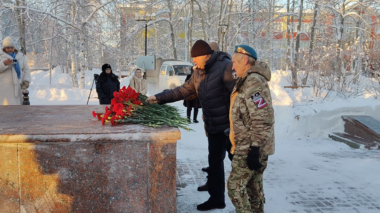 В Сквере Победы глава района вместе с Петром Анатольевичем провели торжественную церемонию слияния частиц Вечного огня. Право произвести слияние огня было предоставлено узнику концлагерей Неле Ивановне Макаренко и ветерану боевых действий, участнику СВО Андрею Владимировичу Блинову.