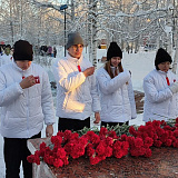Возложили цветы к мемориалу и минутой молчания почтили помять о погибших.
