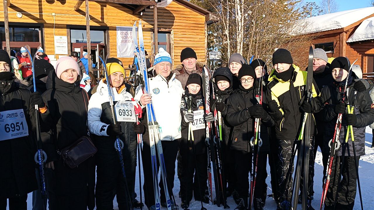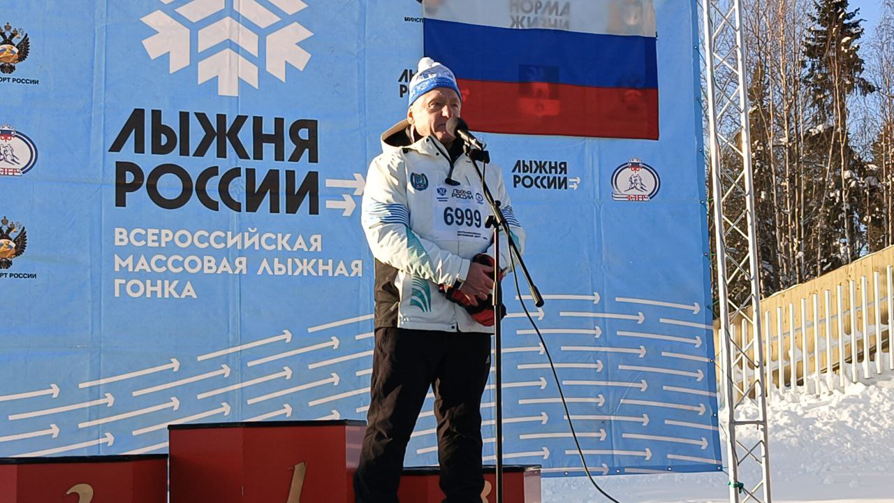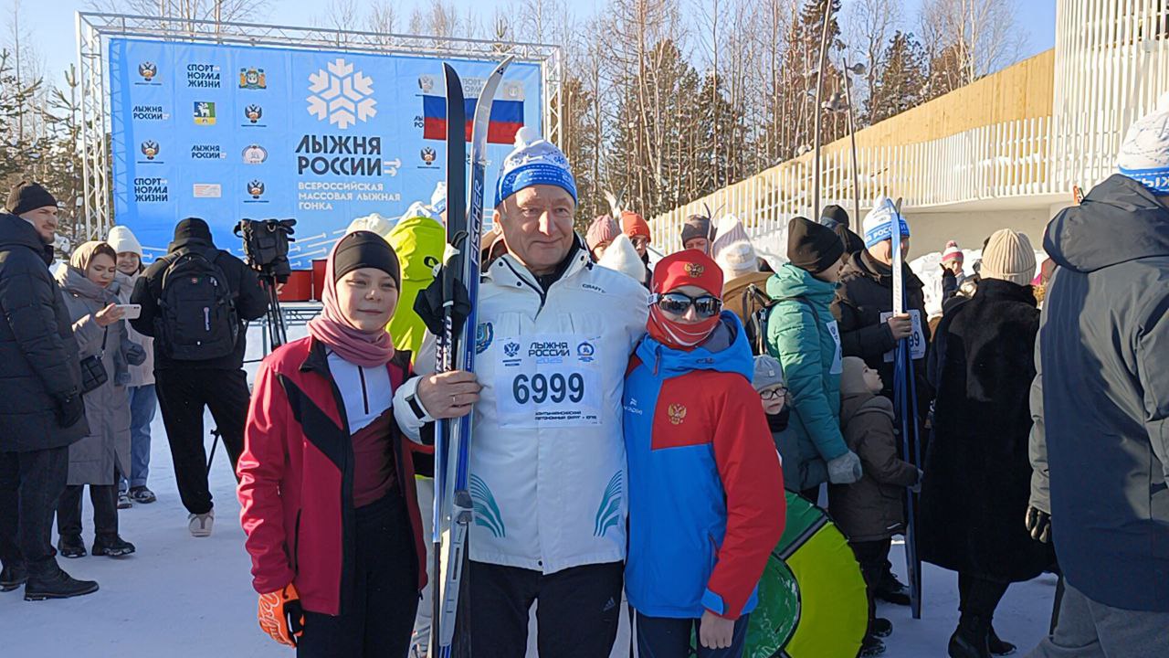 Сегодня на лыжной базе «Белая горка» глава территории принял участие в празднике зимнего спорта – «Лыжня России – 2025»