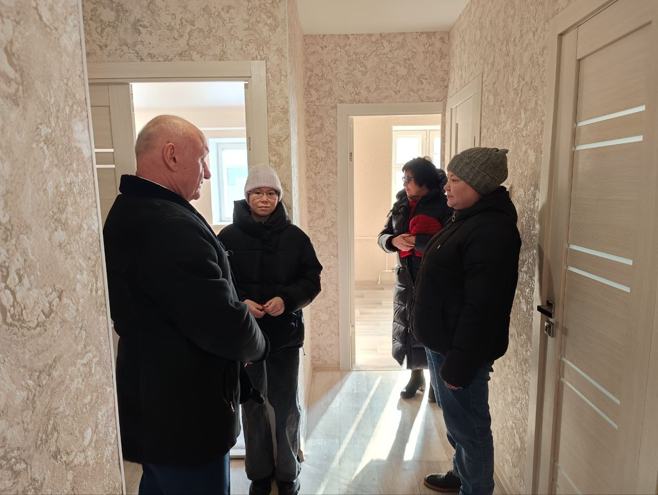 Глава муниципалитета поздравил Надежду с праздничным событием и подарил мультиварку. Пожелал обрести в новой квартире счастье и благополучие.