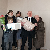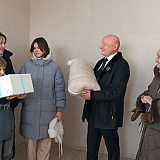 Глава района поздравил супругу бойца с наступающим Международным женским днем, подарил букет цветов и праздничный торт. Пожелал семейного тепла, побольше радостных моментов, которые они проживут вместе, благополучия и крепкого здоровья.