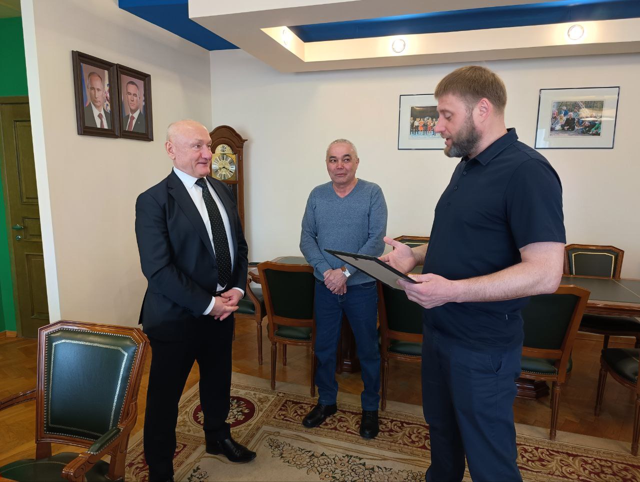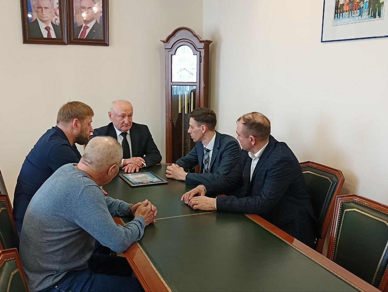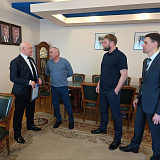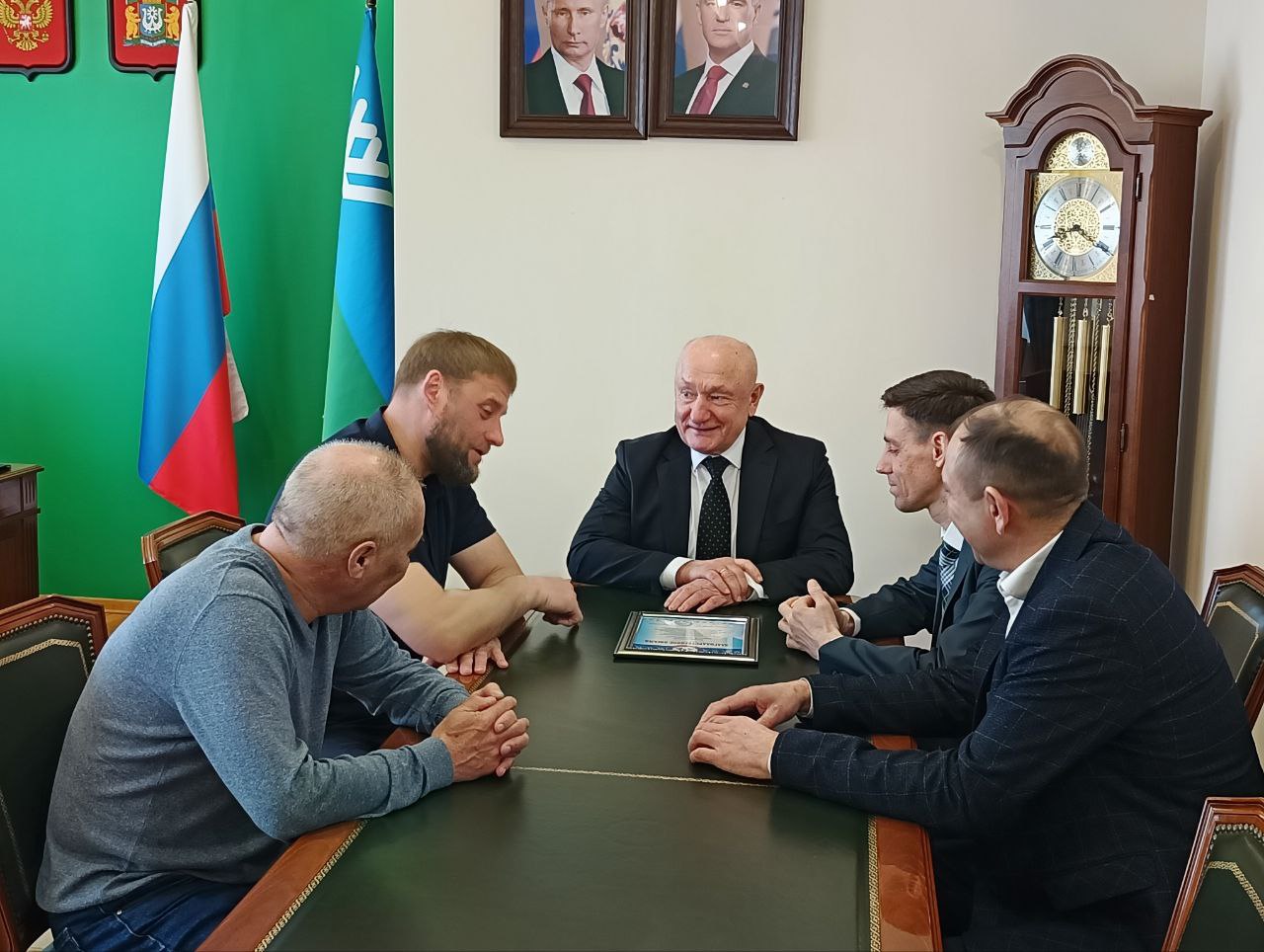 Сегодня Сергей Маненков провел рабочую встречу с Президентом Федерации северного многоборья России Алексеем Валерьевичем Ворошиловым, Президентом Федерации северного многоборья Югры Константином Сергеевичем Соловьевым и главным тренером команды Югры Олегом Андреевичем Хатаневым