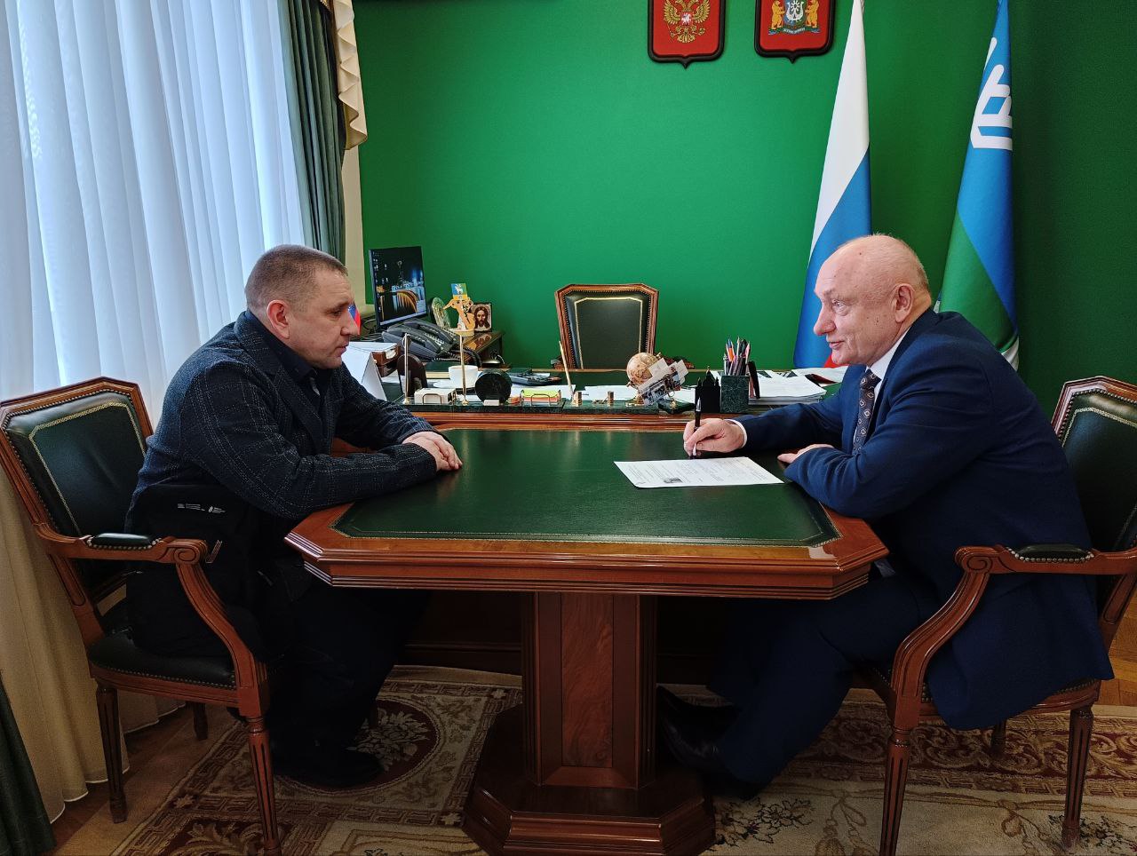 Сегодня Сергей Маненков провел встречу с земляком, участником специальной военной операции, ветераном боевых действий Дмитрием Апкаликовым