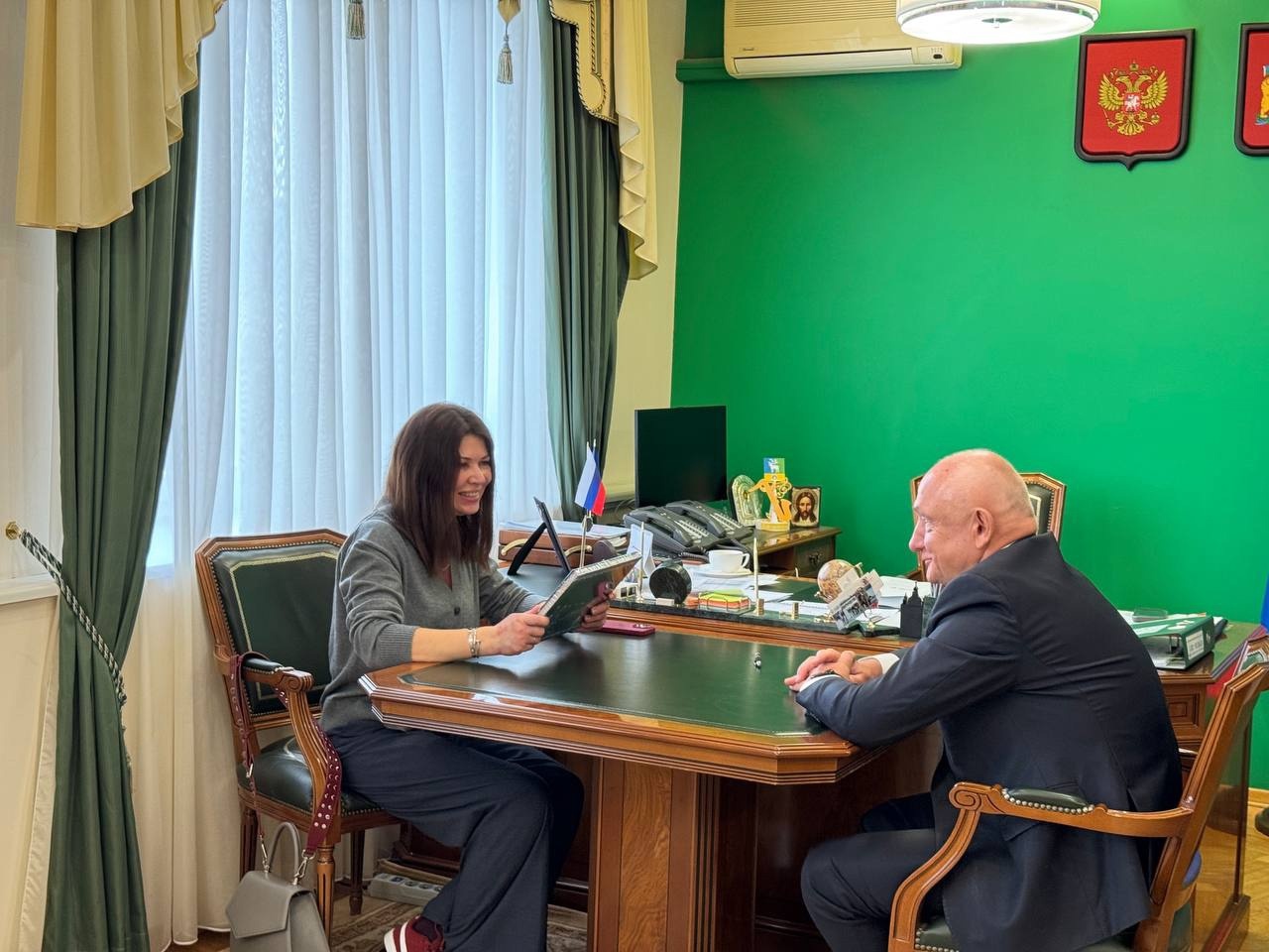 Сегодня Глава района провёл встречу с автором детских книг – Екатериной Земляничкиной.
