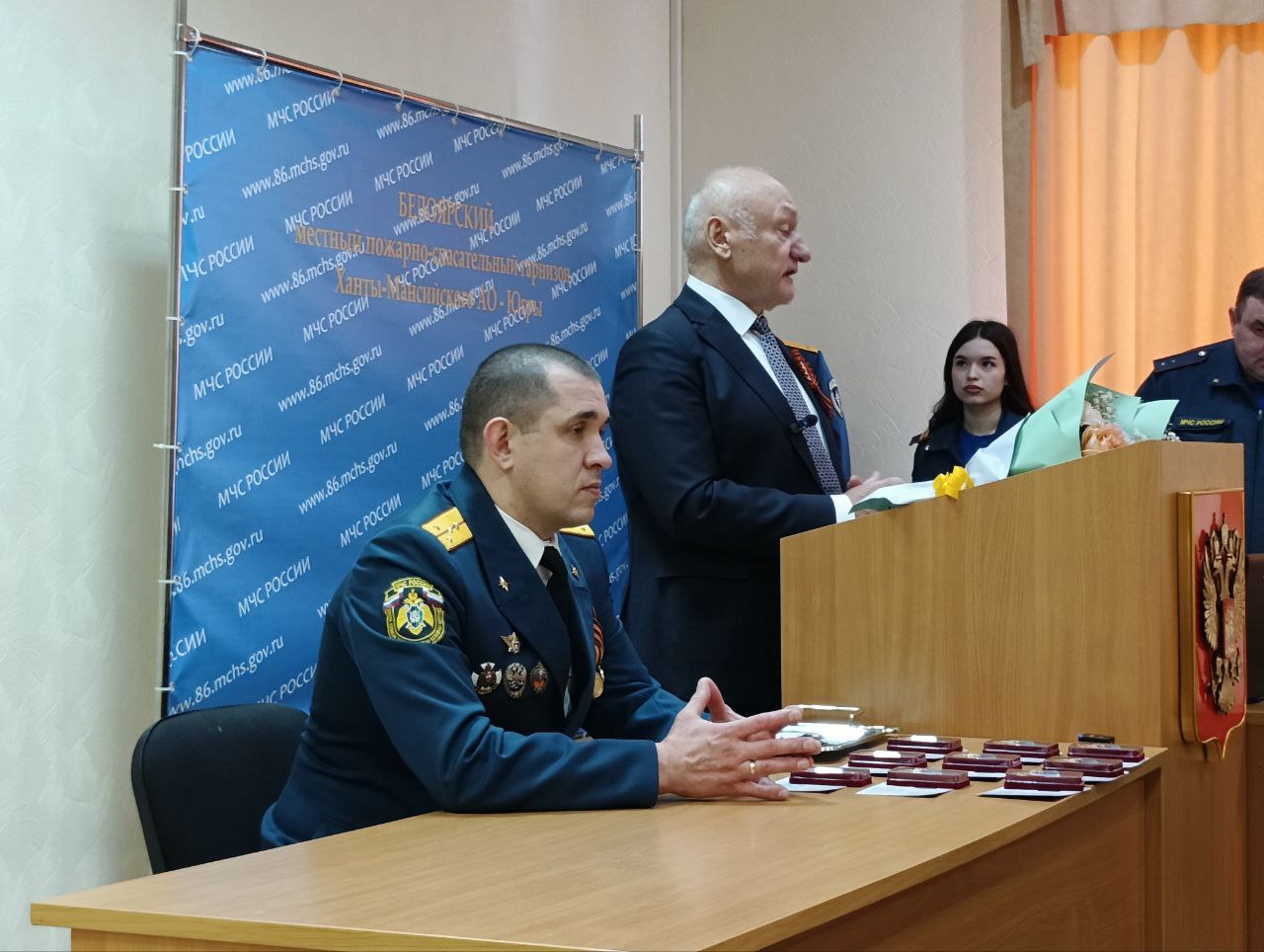 Глава муниципалитета вручил Почётную грамоту и нагрудный знак Ассоциации «Совета муниципальных образований автономного округа - Югры» всему коллективу за высокий профессионализм, добросовестное выполнение служебных обязанностей и большой вклад в обеспечение пожарной безопасности Белоярского района. Поблагодарил работников и ветеранов за каждодневный напряжённый труд, высокий профессионализм, смелость и оперативность.