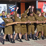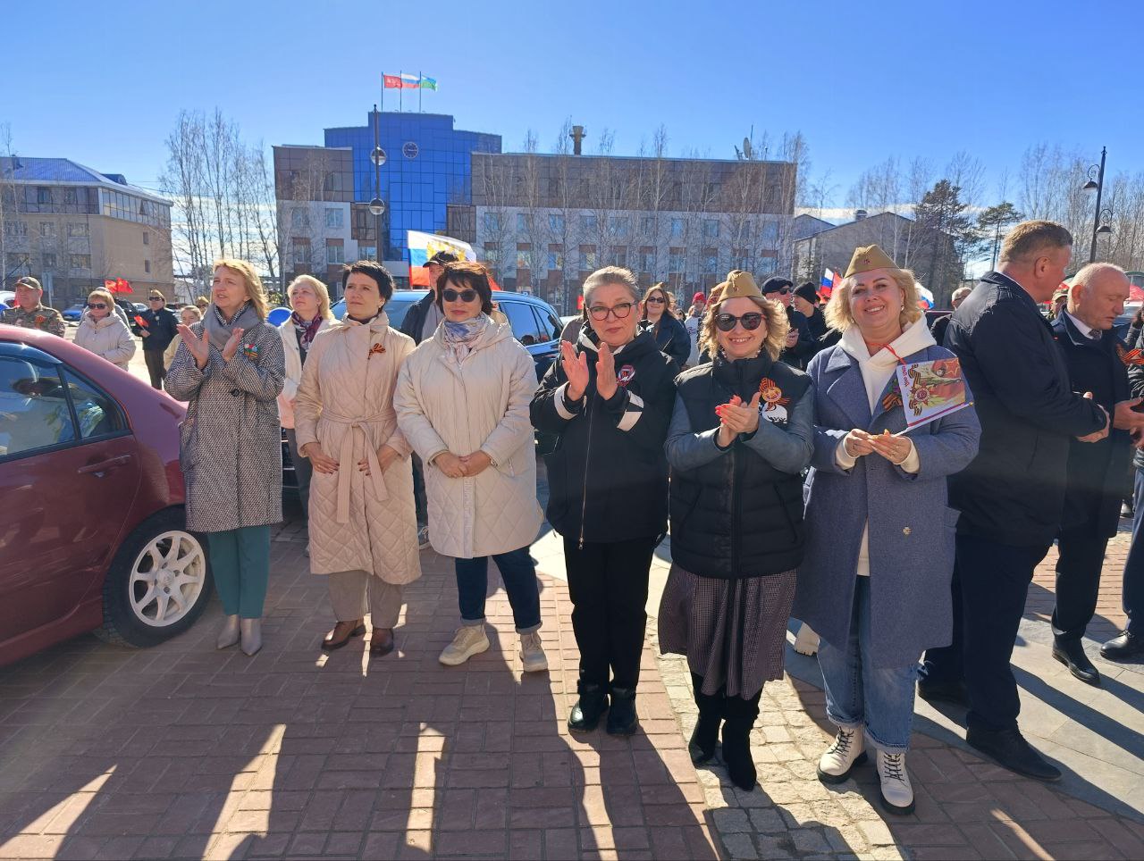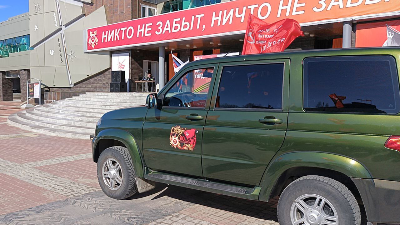 В городе к автоколонне присоединился грузовик «Полуторка». Участники финишировали на площади Центра культуры и досуга «Камертон», где состоялась торжественная встреча и концертная программа. Здесь автомобили выстроилась в форме буквы V, символизируя победу и сплочённость.