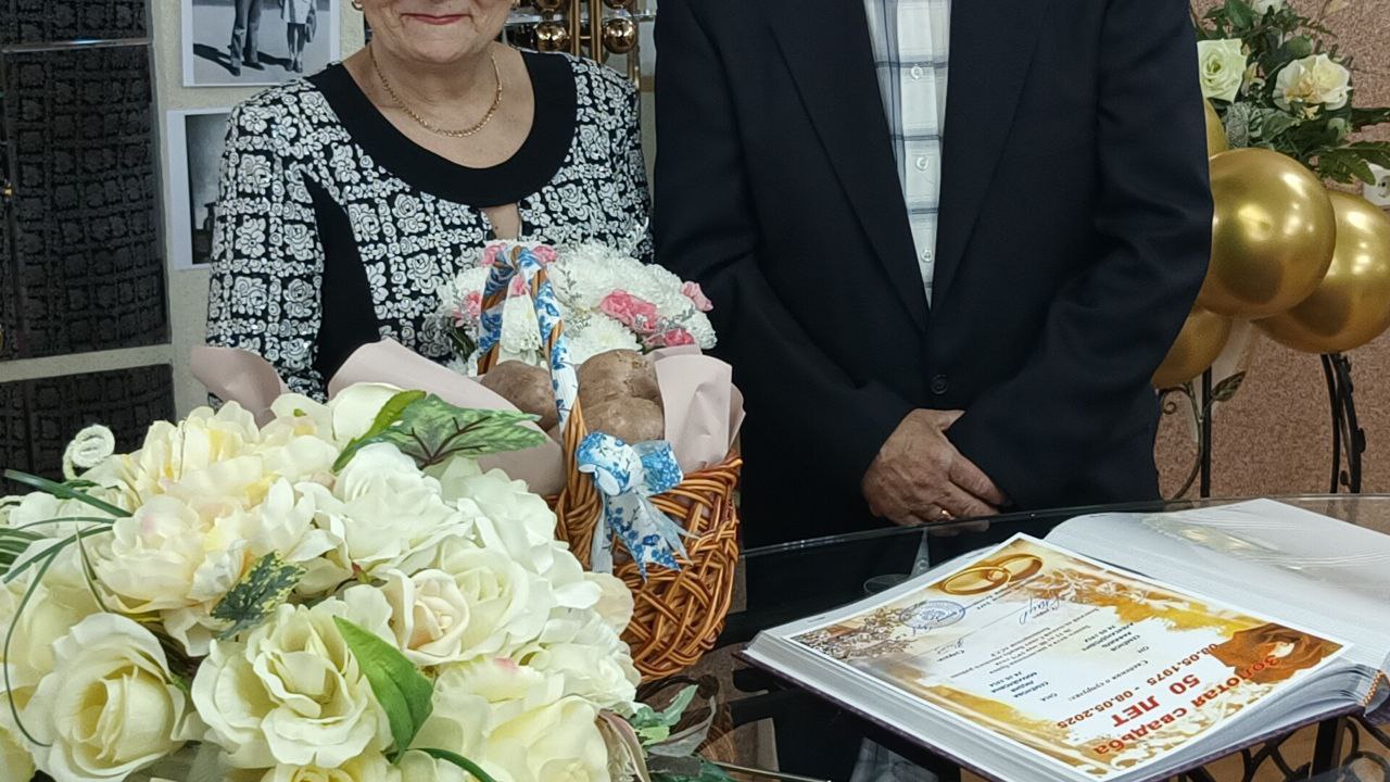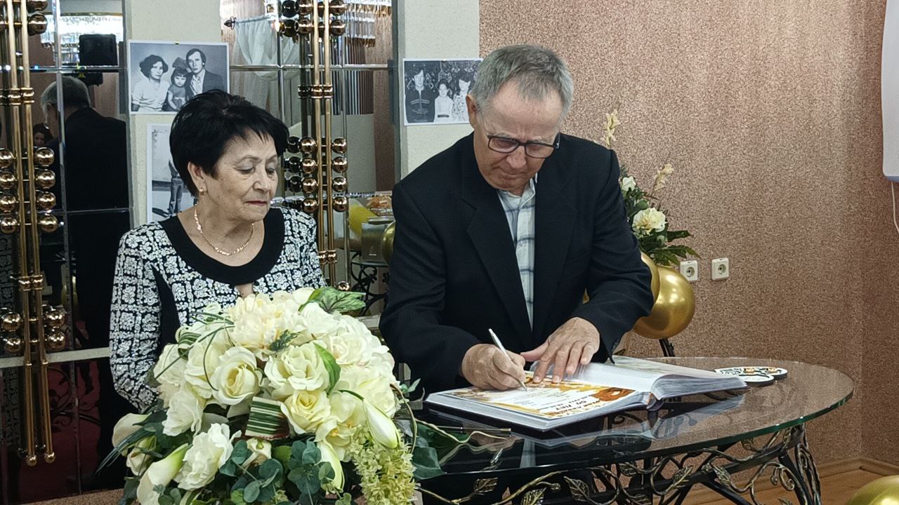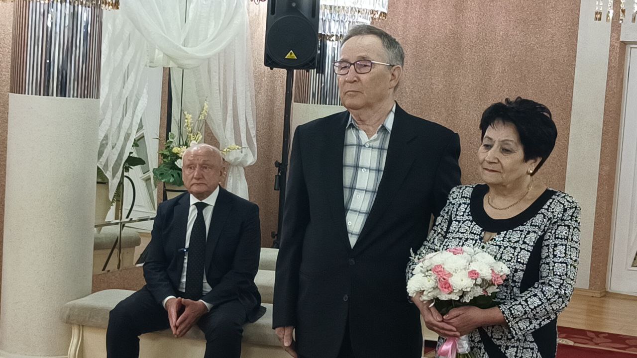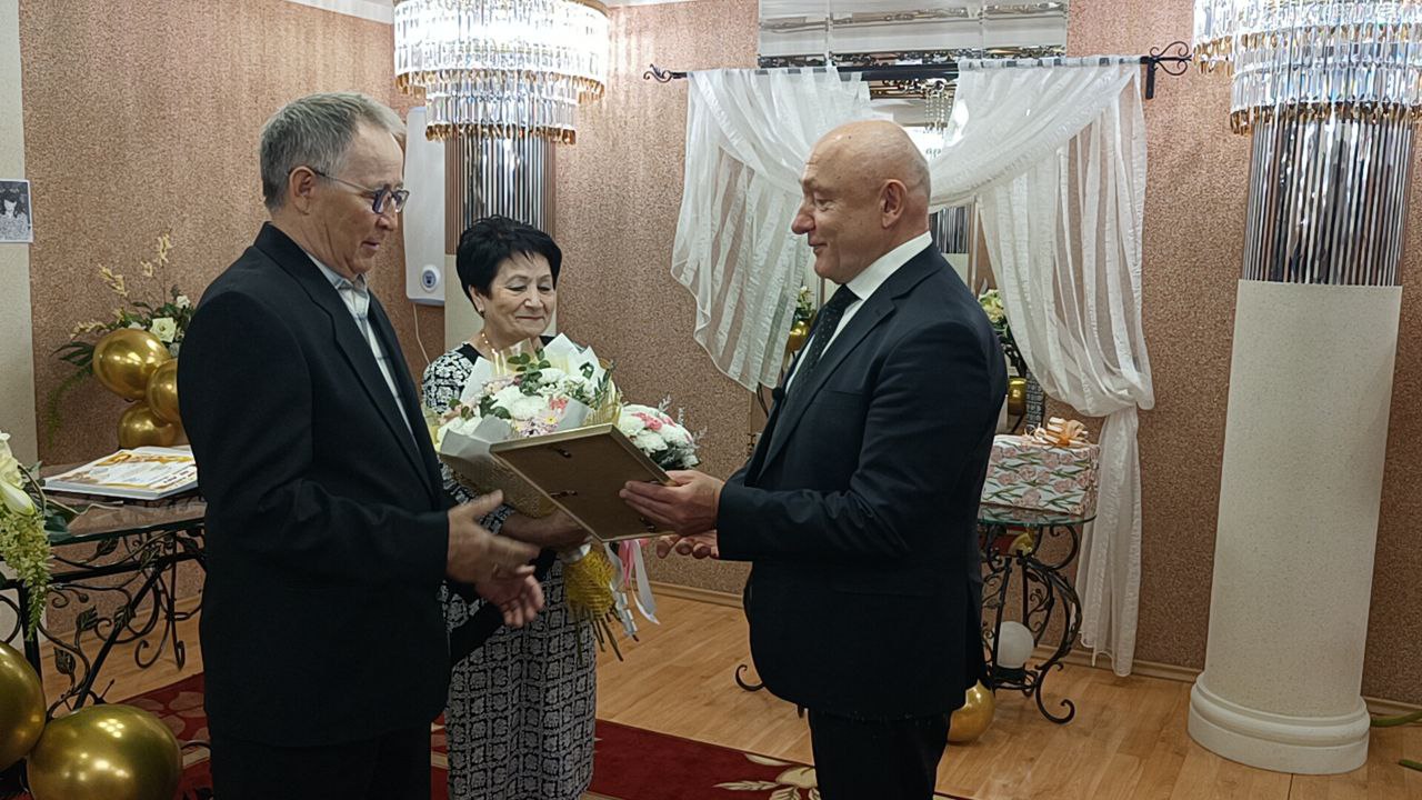 Сергей Маненков посетил ЗАГС и поздравил супружескую пару Семеновых Лидии Михайловны и Рафаиля Александровича с золотым юбилеем совместной жизни