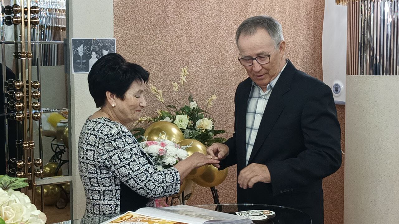Глава района поздравил семейную пару с «золотой свадьбой» и вручил памятные подарки. Пожелал здоровья, благополучия, мира, добра и долгих счастливых лет совместной жизни!