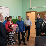 Сергей Маненков поздравил коллектив с юбилеем учреждения. Вручил сертификат на 60 тыс. для приобретения офисной техники. Наградил Благодарностью Николая Тюльканова, старшего оперативного дежурного, за успешную работу и высокие показатели. Пообщался с сотрудниками учреждения и начальником службы Любовью Фроловой.