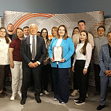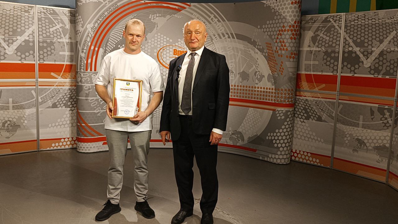 Вручил Благодарственную грамоту технику Дмитрию Шведову за многолетний труд и профессиональное мастерство.