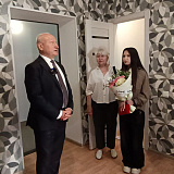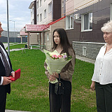 У Ирины сегодня день рождения. Символично, что именно в этот день она получила ключи от новой квартиры. Глава территории поздравил Ирину с днем рождения и с приобретением собственного жилья, подарил мультиварку.