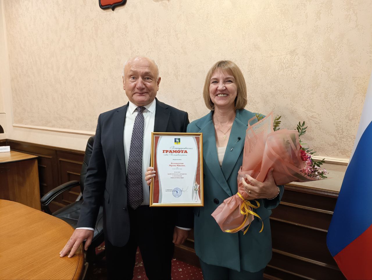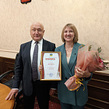 Вручил Благодарственную грамоту Марине Юрьевне Большинской за многолетний добросовестный труд.