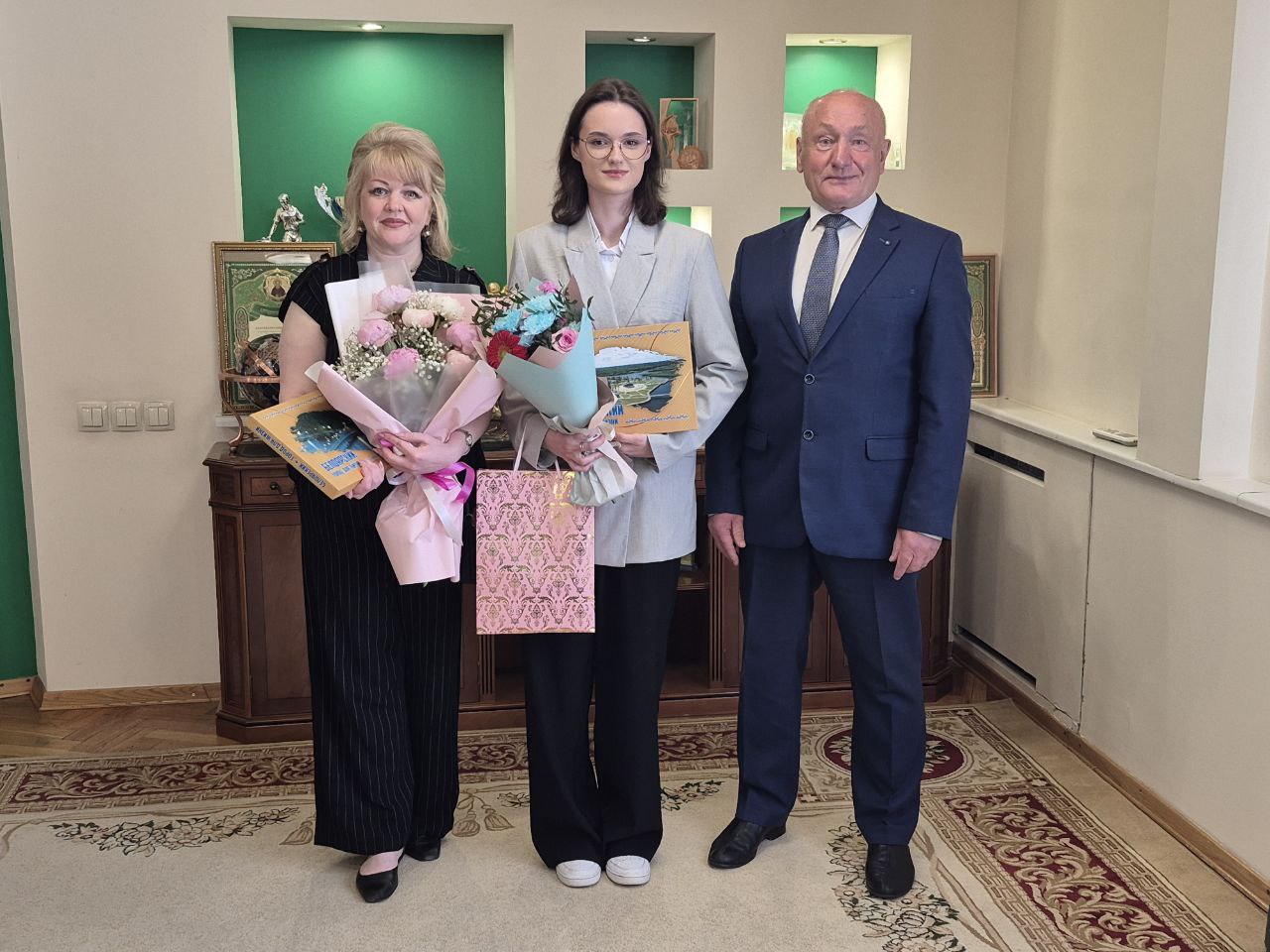 Глава района вручил выпускнице памятный подарок и пожелал успехов в дальнейшем пути, новых открытий и ярких побед. Выразил благодарность педагогу за вклад, внесенный в развитие молодого поколения.