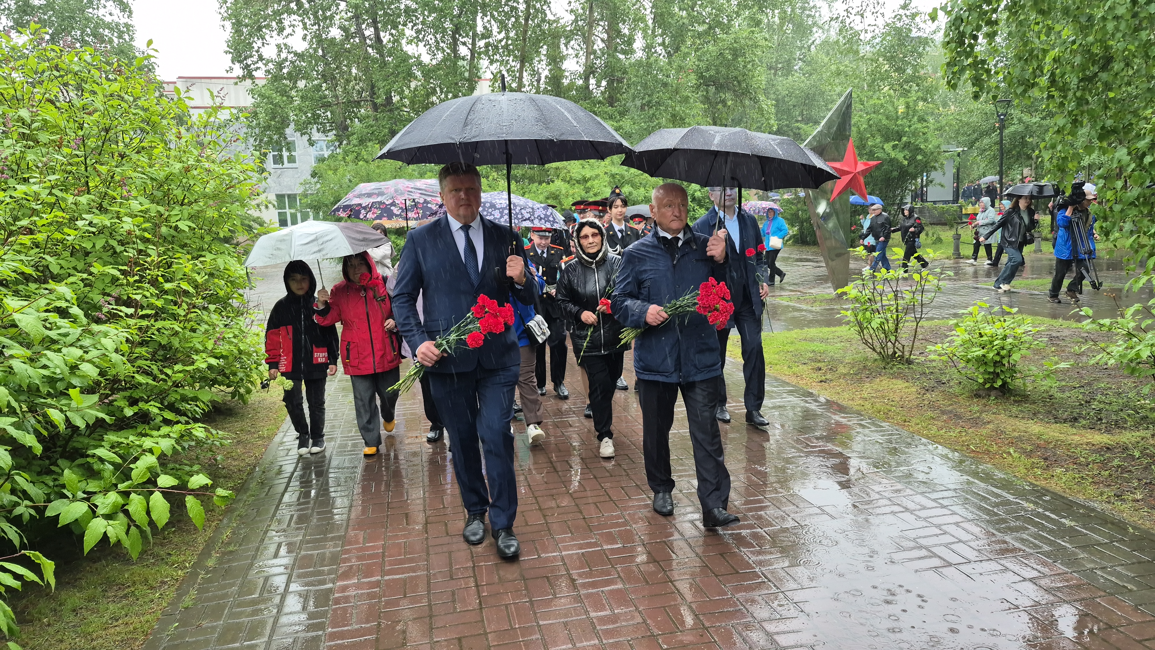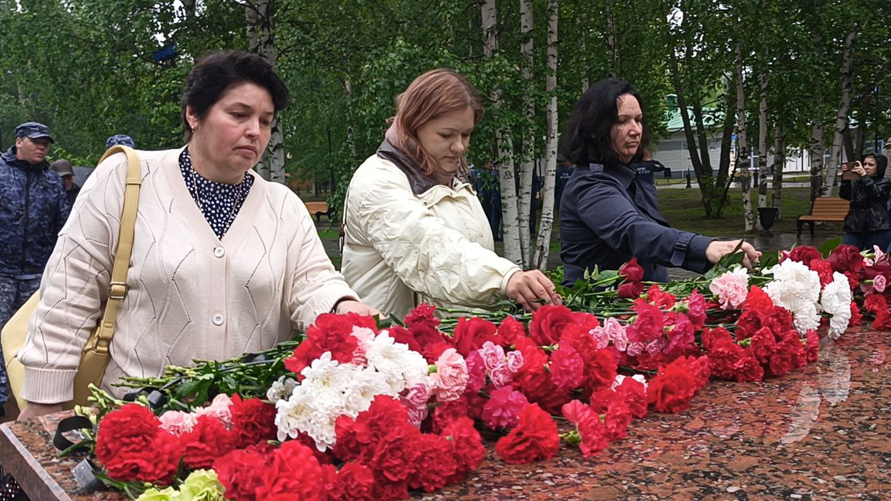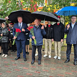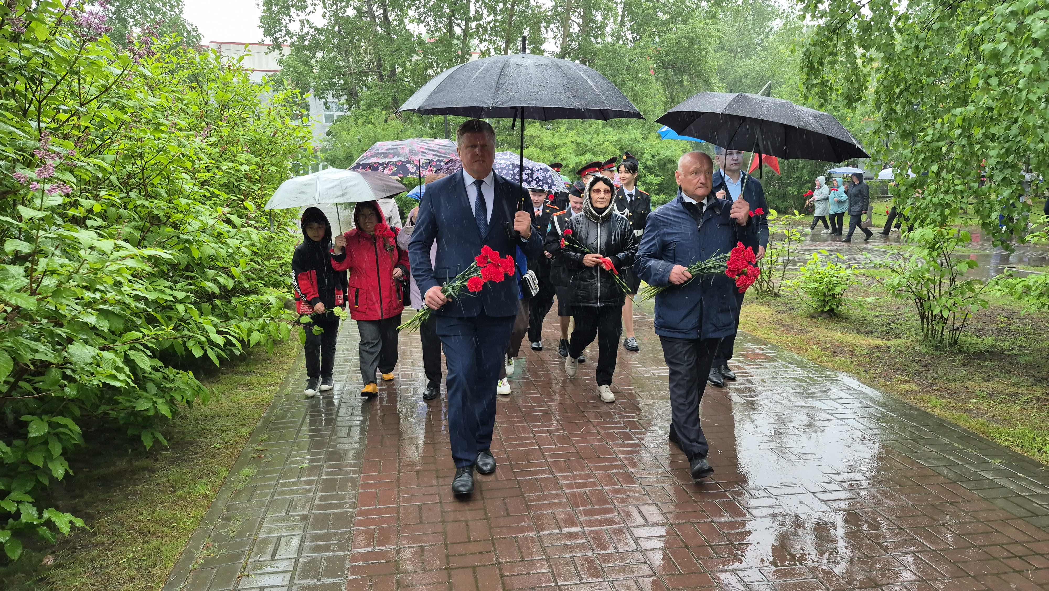 В торжественной церемонии приняли участие руководители организаций, представители силовых структур, участники СВО, активная молодёжь, общественники и совет ветеранов. Все участники возложили цветы к вечному огню и почтили память героев минутой молчания.