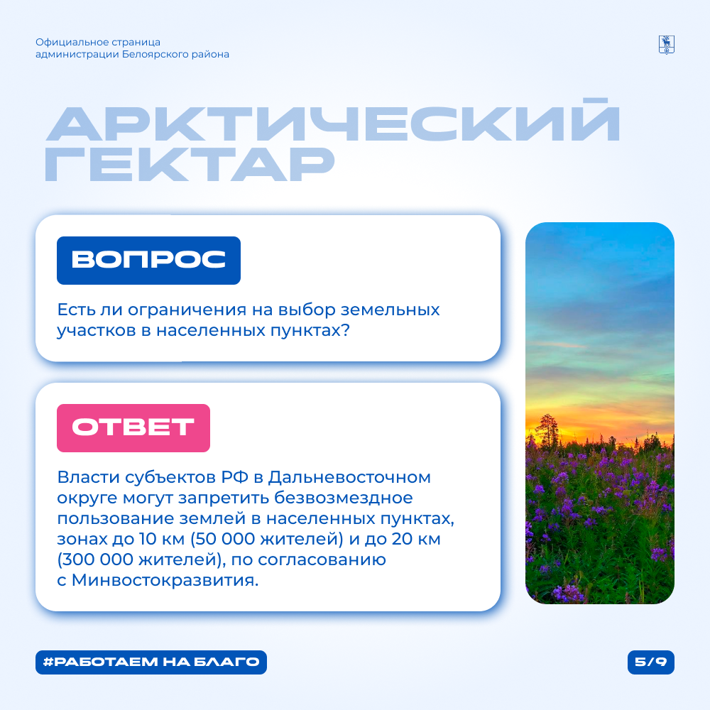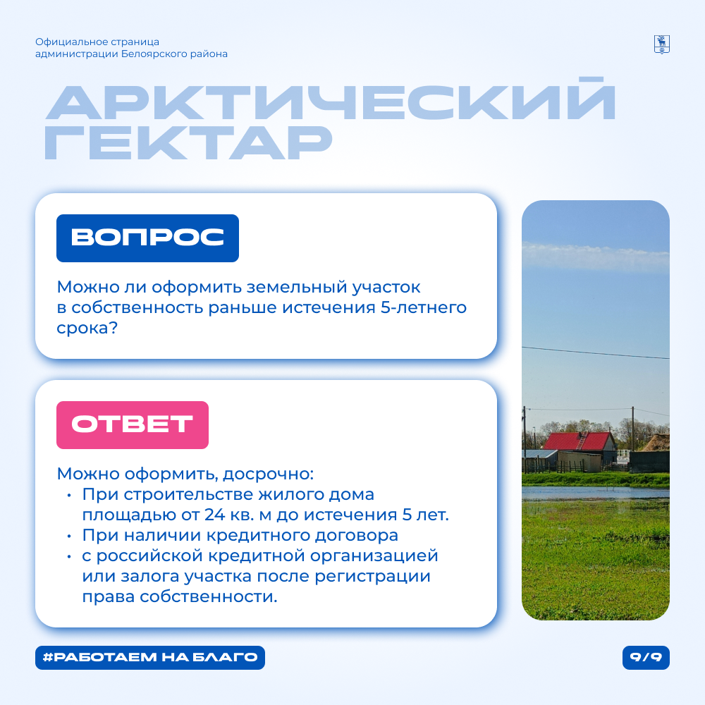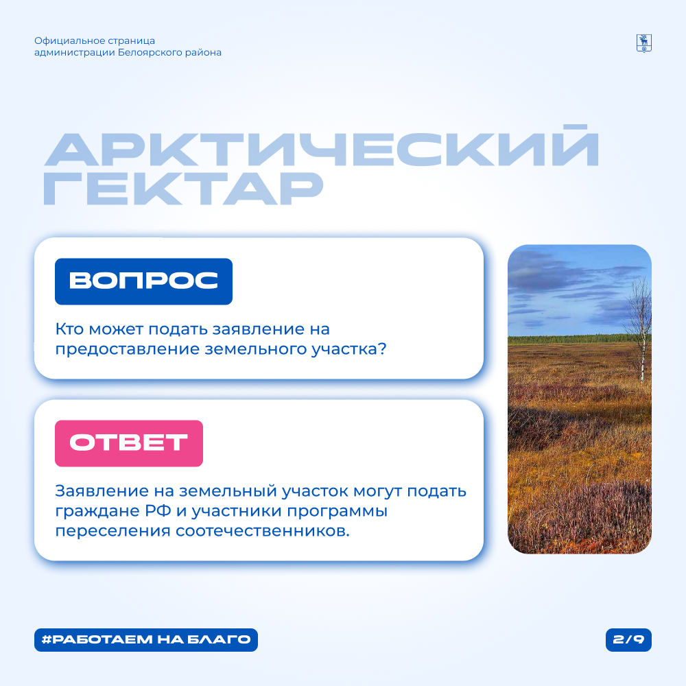 С 1 сентября 2025 жители Белоярского района смогут бесплатно получить земельные участки по программе «Арктический гектар».