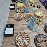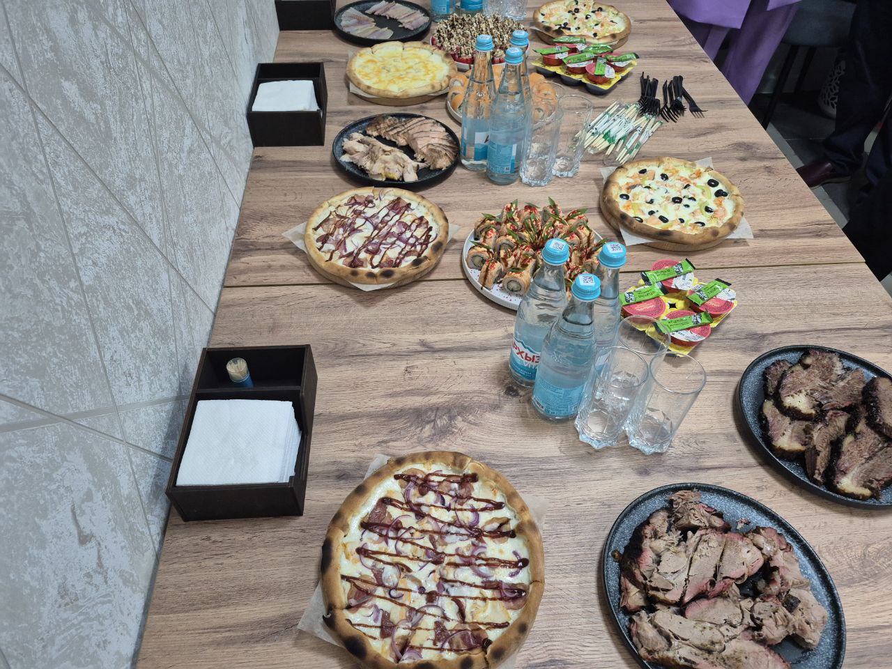 В кафе оборудованы современные цеха для производства пиццы, роллов и десертов, а также отдельный цех для приготовления рыбы и мяса горячего и холодного копчения, есть мангальный отдел.