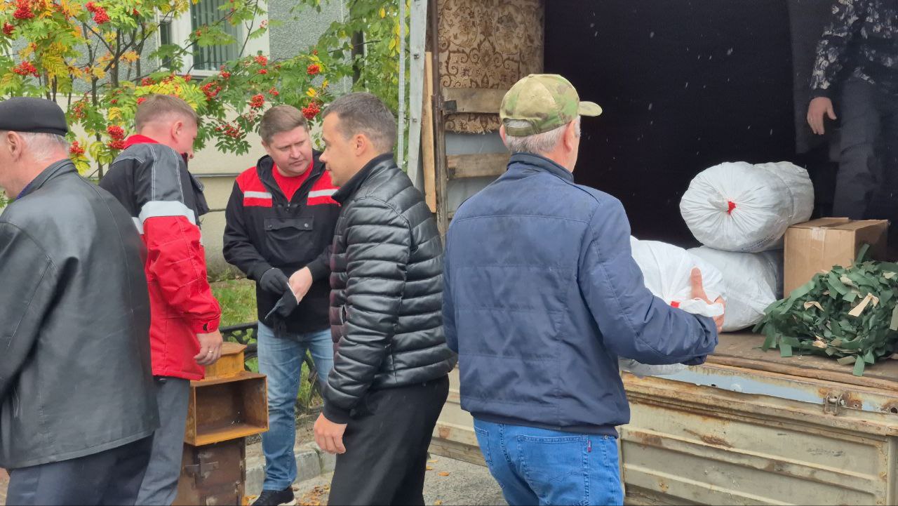 Сегодня глава района вместе с участниками СВО, волонтёрами, представителями общественных организаций, неравнодушными жителями мы отправили гумпомощь участникам СВО - 7 переносных окопных печей и 36 маскировочных сетей.