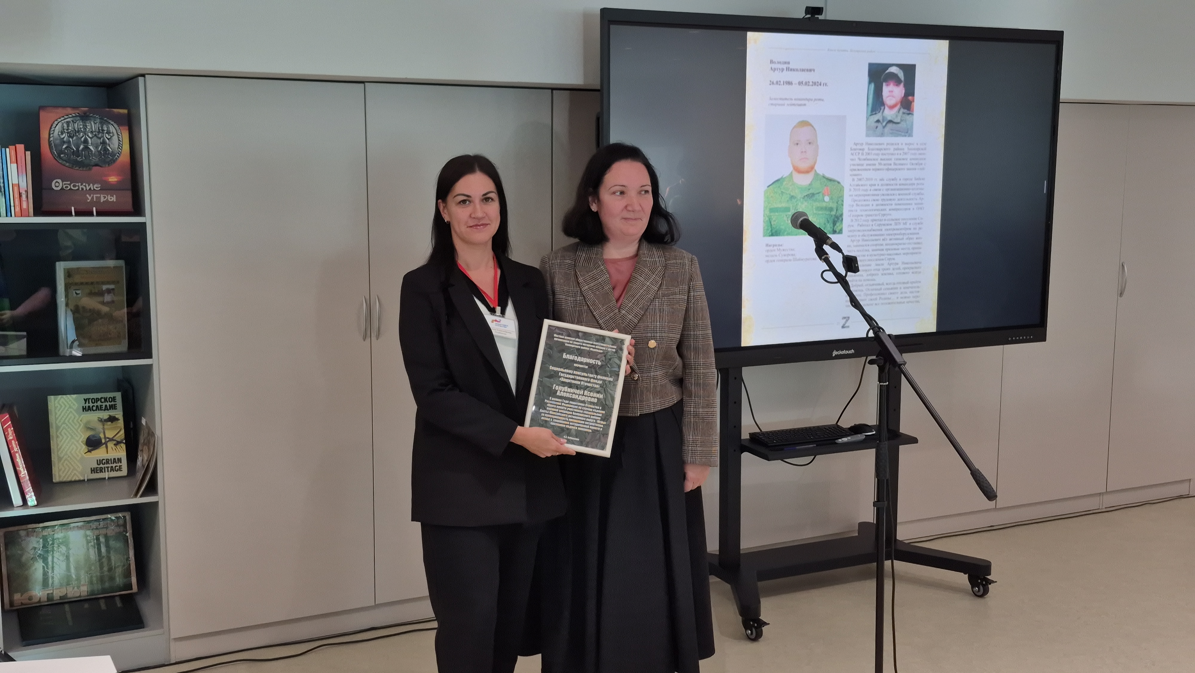 В завершении встречи были торжественно вручены первые экземпляры книг семьям участников СВО, чьи имена увековечены в них. Также переданы книги в образовательные учреждения района, библиотеки, архив и в политехнический колледж.