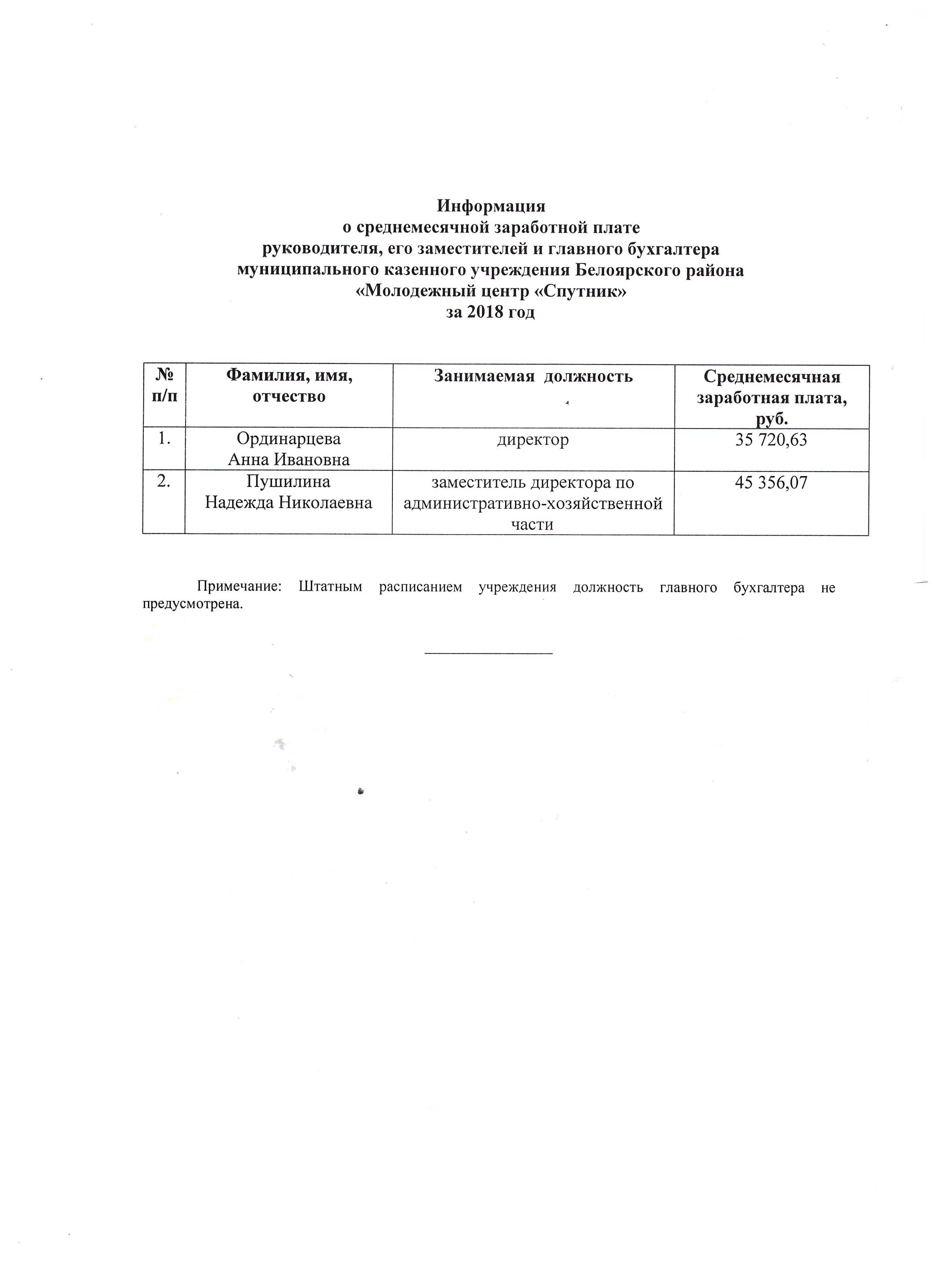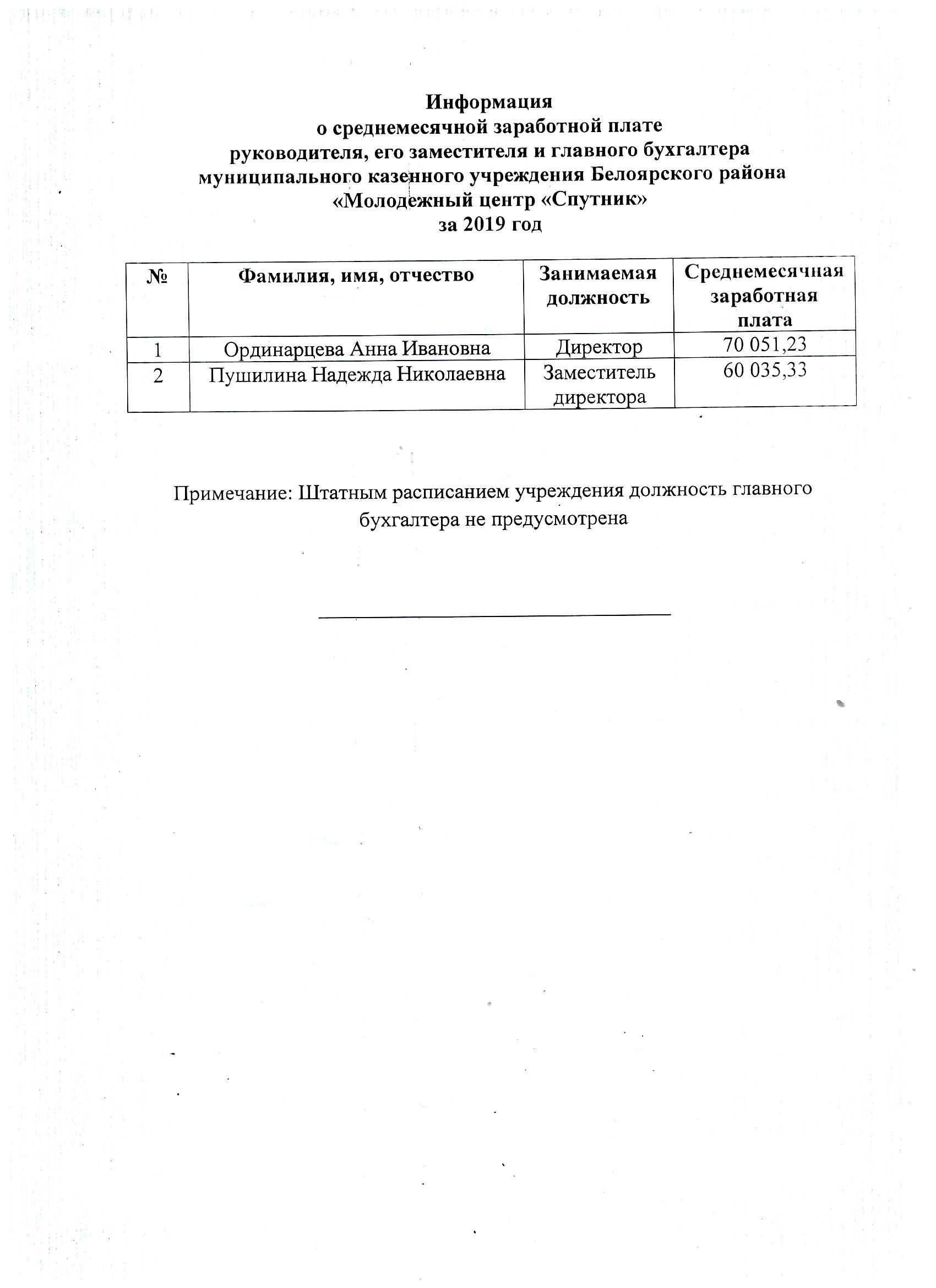 Среднемесячная заработная плата руководителя, заместителя, главного бухгалтера